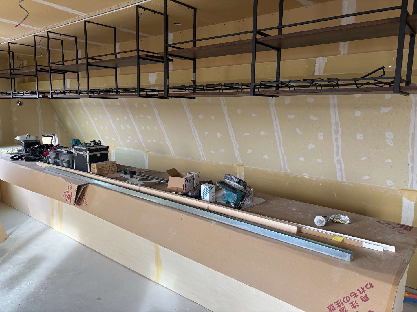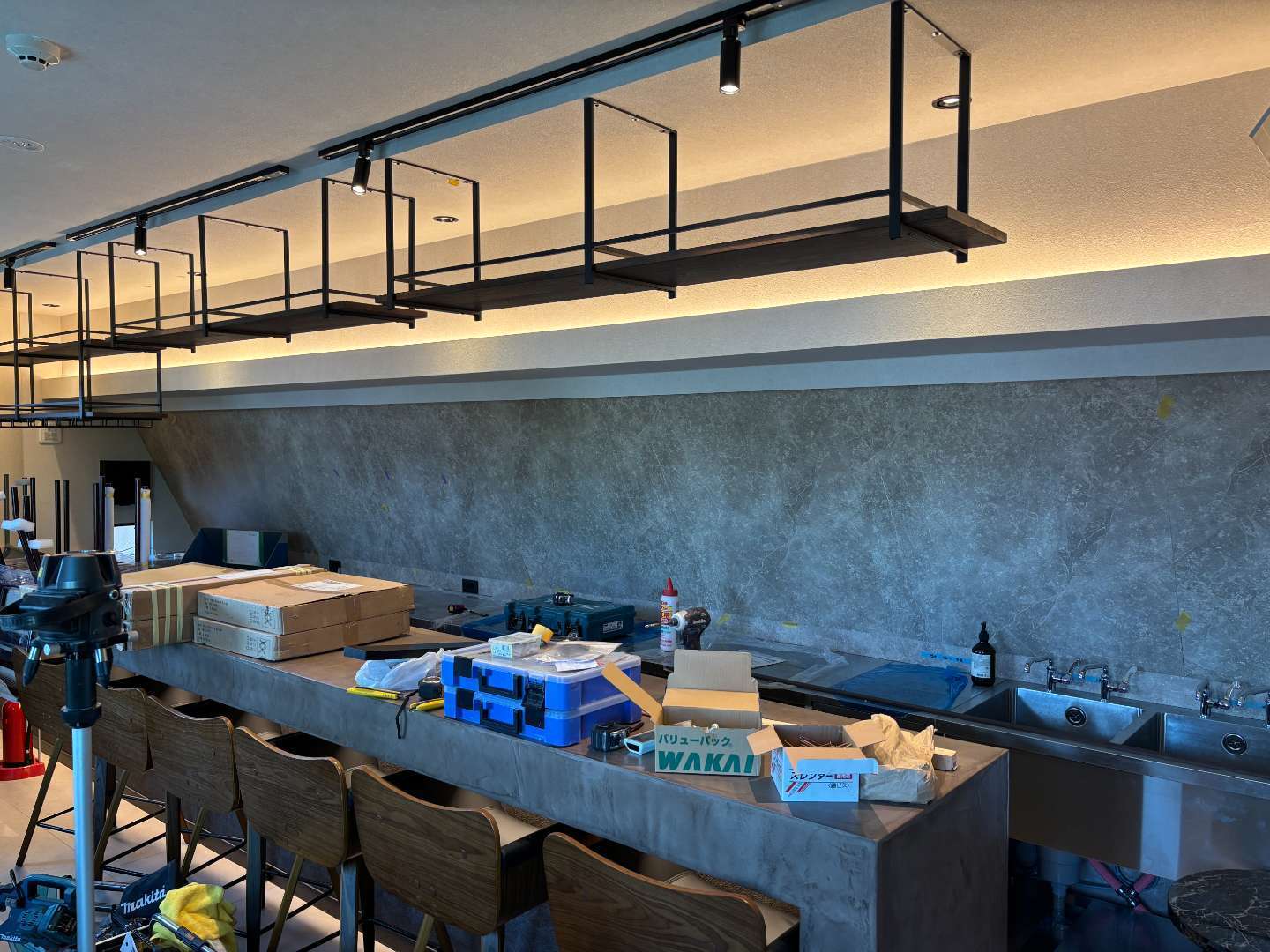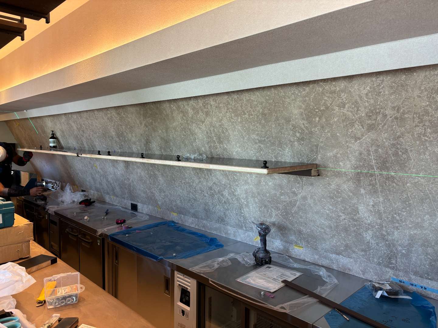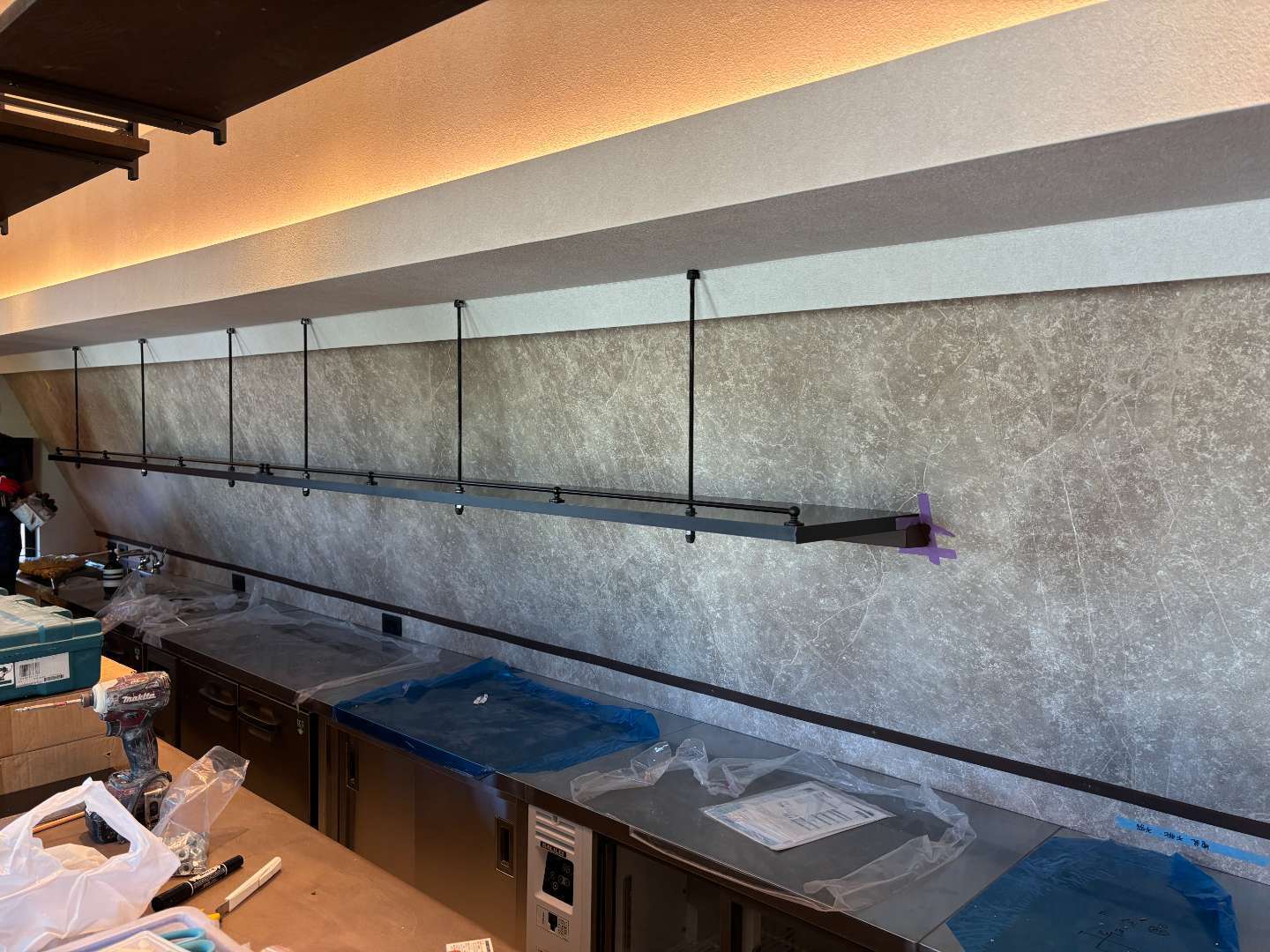 厨房設備や電気配線との干渉にも注意を払いながら、現場に応じた柔軟な対応でスムーズに施工を進行。仕上がりの美しさと実用性を両立させた店舗づくりをお手伝いしました。